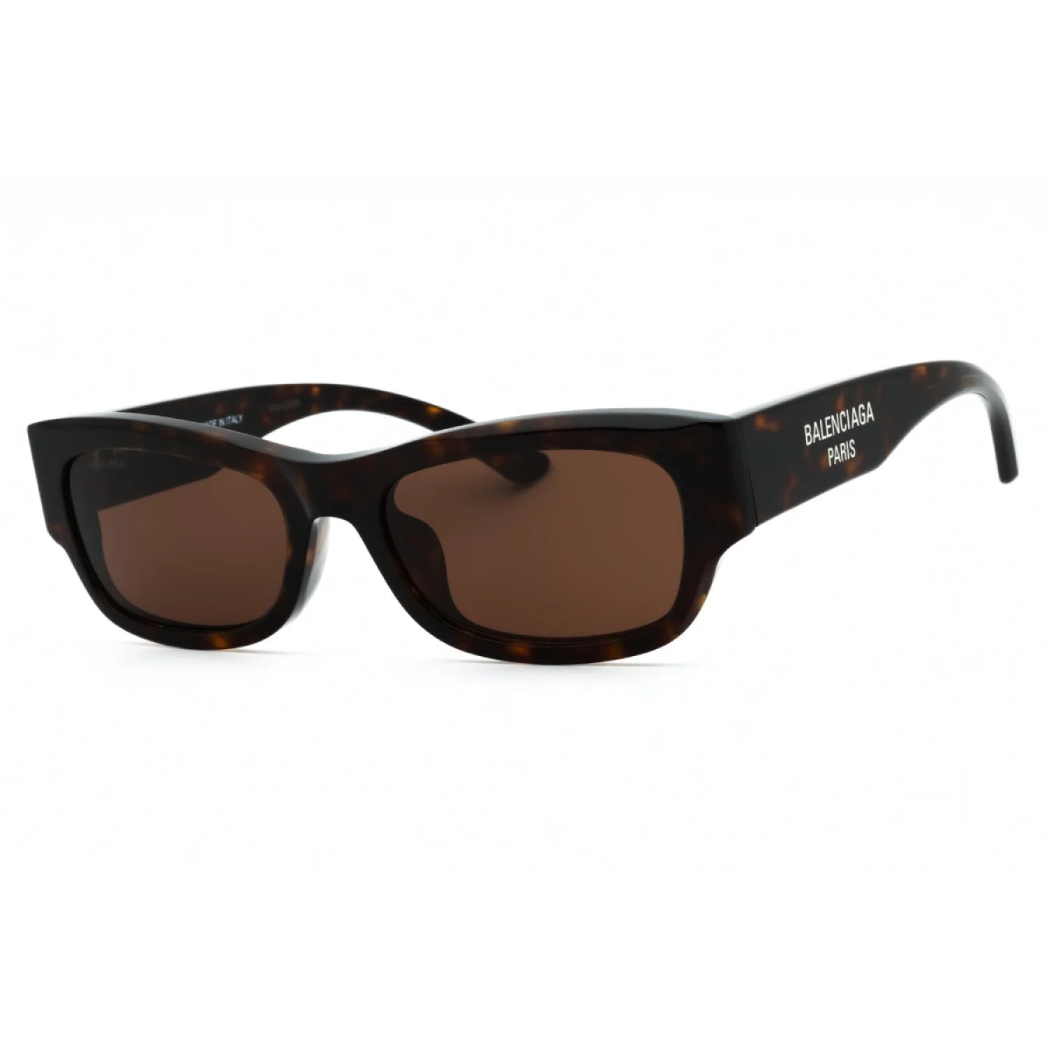 Balenciaga BB0390SK sunglasses from the Everyday series feature a bold square shape with an oversized frame for a striking, fashion-forward look. Crafted from recycled acetate, they offer a large size with wide temples and a laser-etched logo for enhanced brand visibility. These unisex shades provide UV protection and sharp vision, ideal for everyday style statements.