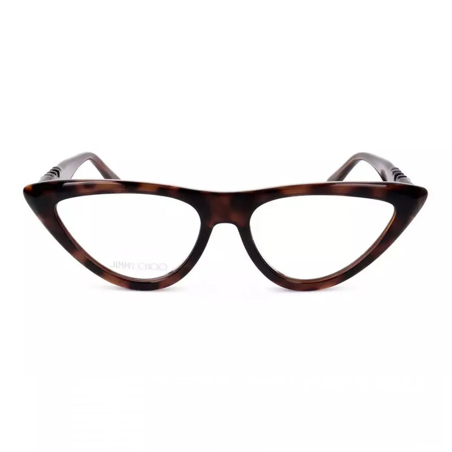 The Jimmy Choo JC255/G is a chic optical frame for women, featuring a bold cat-eye shape crafted from high-quality acetate. This style captures the brand's playful elegance with a prominent full-rim design. The temples are often decorated with the signature sequin glitter fabric or a distinctive Choo logo for an added touch of glamour.
