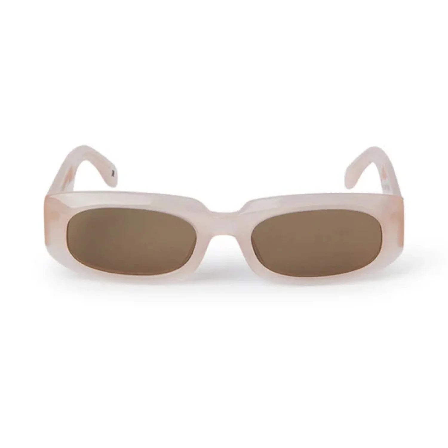 The Palm Angels PERI104 NOAH sunglasses are a distinct eyewear piece, crafted from acetate in a rectangular frame style with oval lenses. They feature a fusion of both solid and dynamic lines, giving them a modern, structured aesthetic. The design provides a contemporary, bold look.