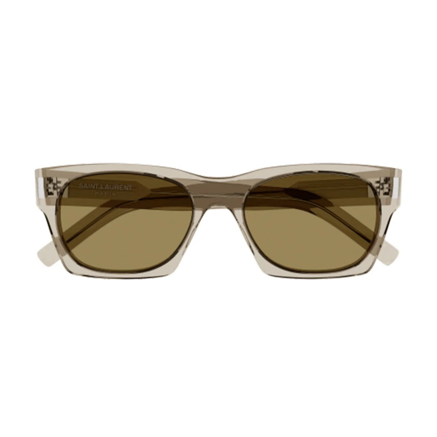 Saint Laurent SL402 sunglasses feature a bold rectangular acetate frame with thick temples and a signature metal logo. The design combines classic luxury with a modern cat-eye silhouette, offering a refined, unisex look that stands out for its structured shape and premium craftsmanship.
