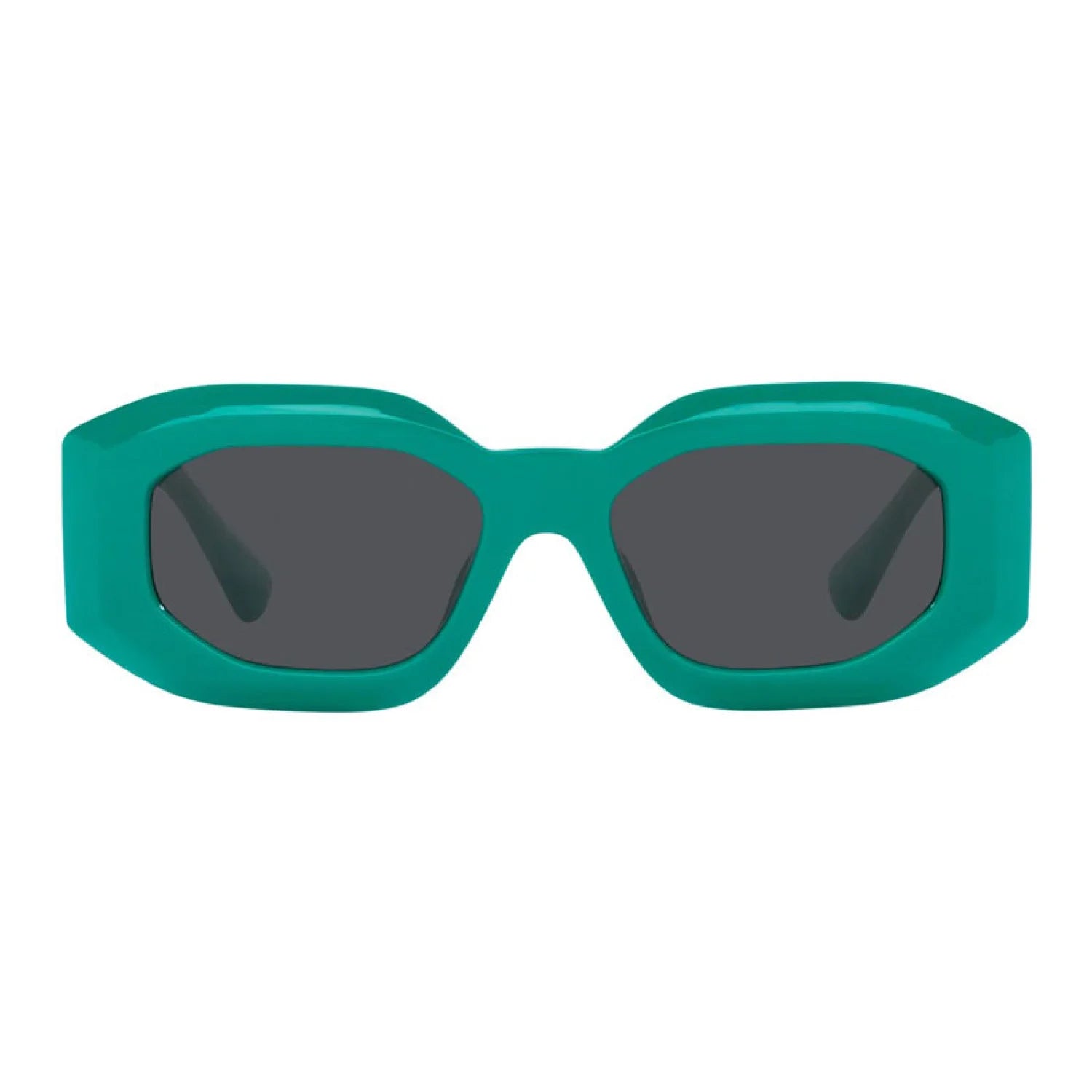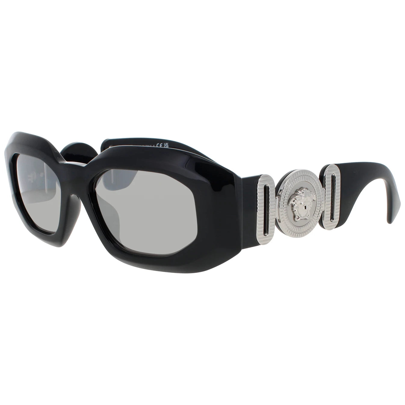 Versace VE4425U sunglasses feature a bold, oversized rectangular frame with iconic Medusa emblem on wide temples, inspired by '90s hip-hop culture. Crafted from premium acetate for durability and comfort, this full-rim design offers a casual yet luxurious vibe perfect for men. The irregular shape ensures a standout, audacious look with superior UV protection.